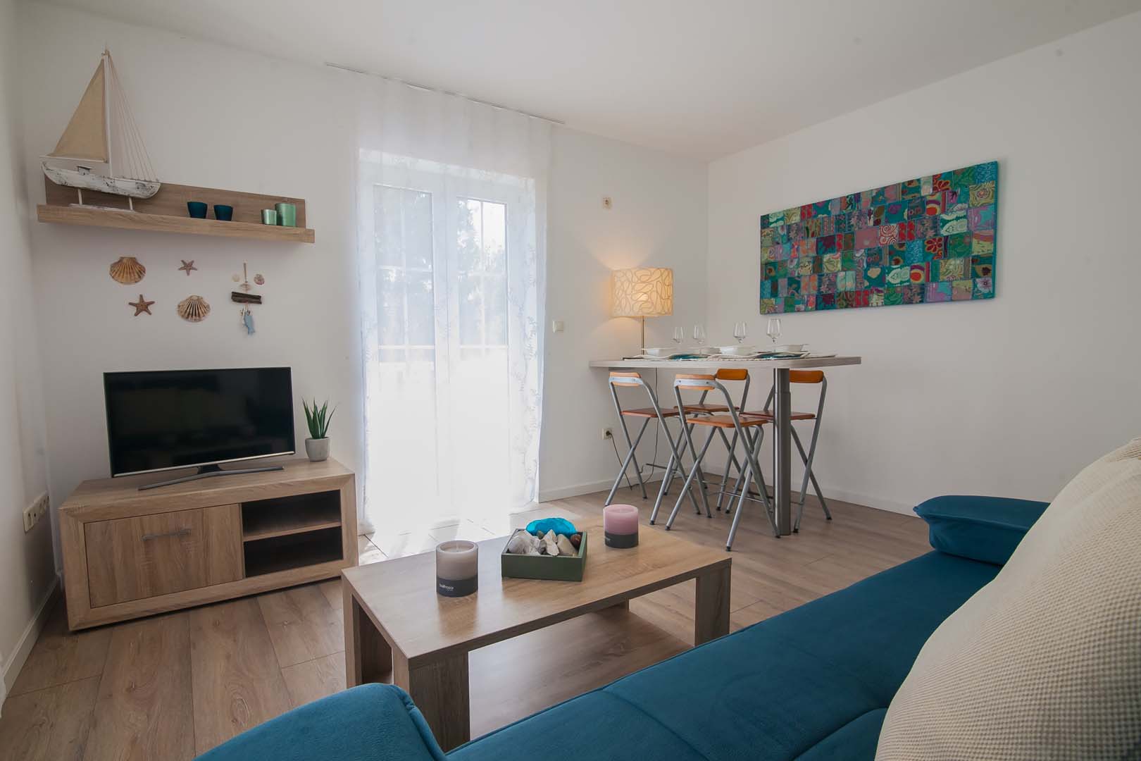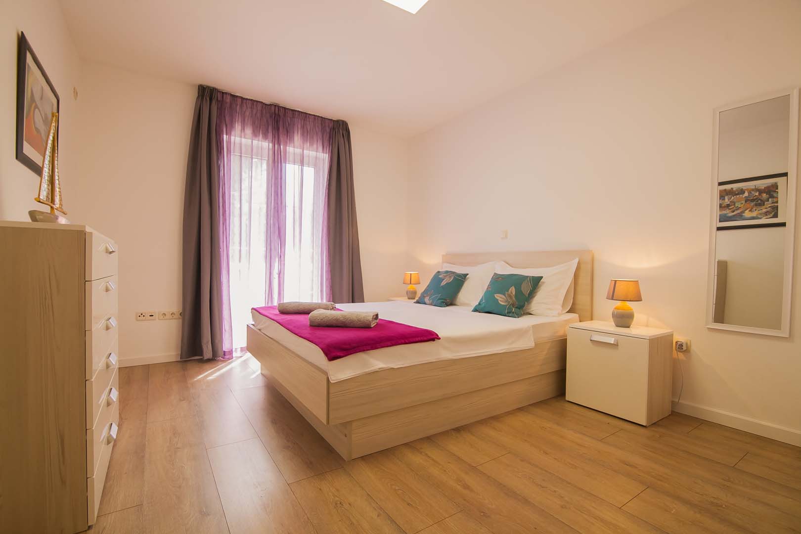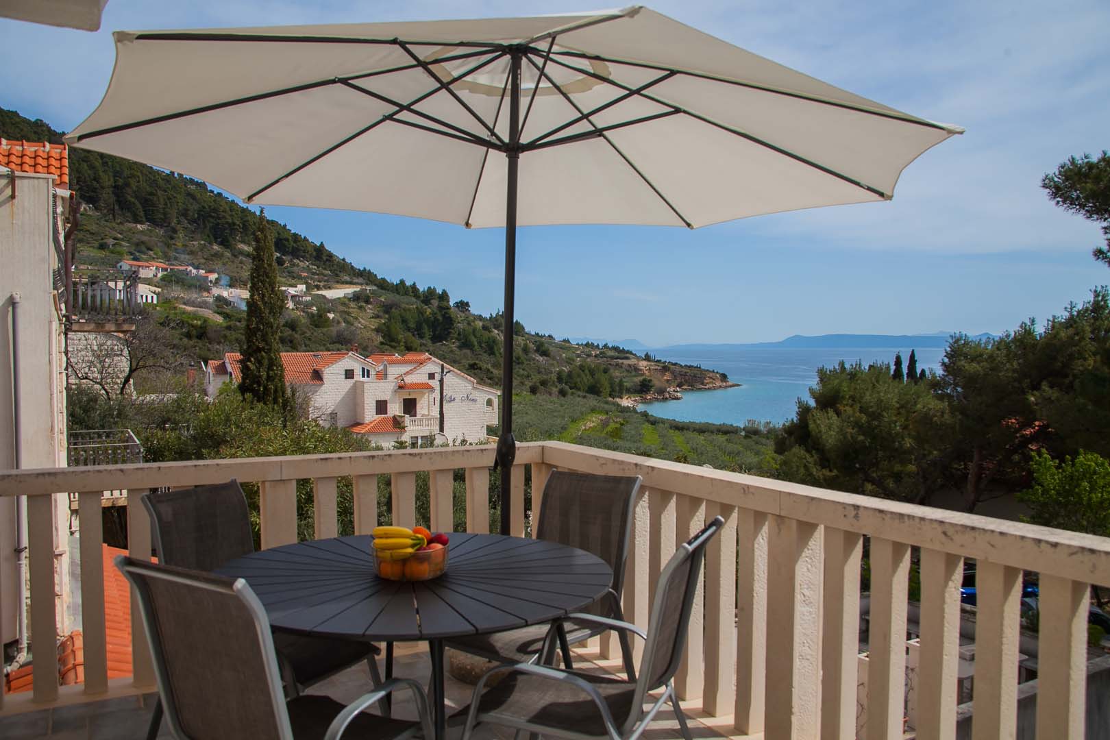 Nalazi se na 1. katu. Na južnoj strani ima veliku terasu i balkon s pogledom na more.