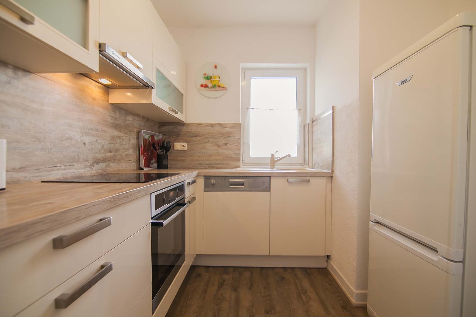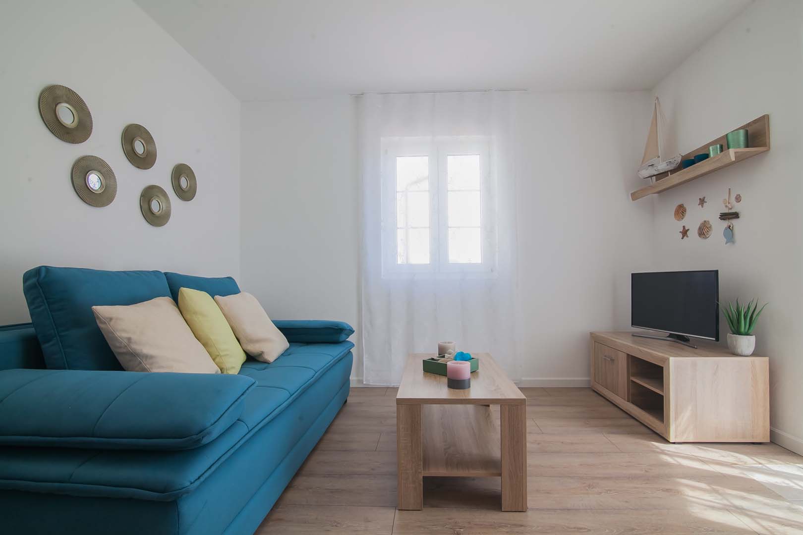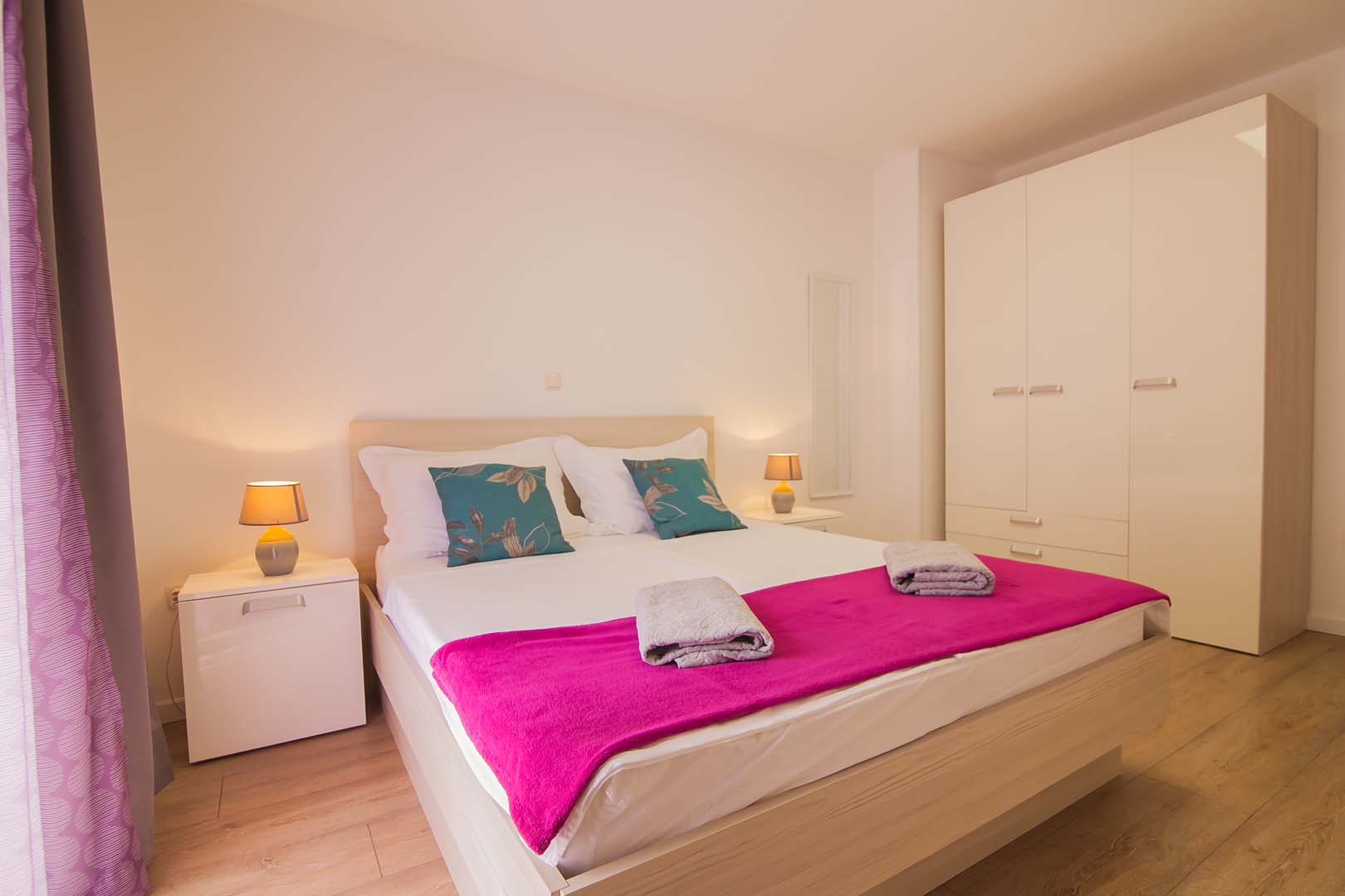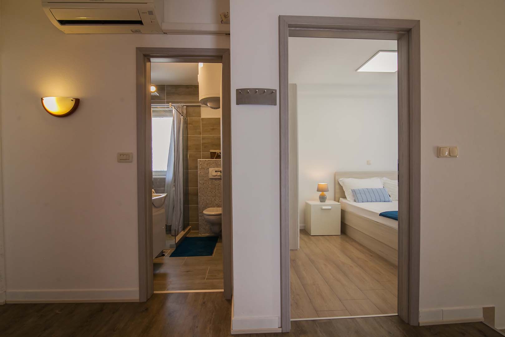 Sastoji se od 2 spavaće sobe ,od kojih jedna ima izlaz na Balkon sa pogledom na more, dnevnim boravkom koji ima izlaz na veliku terasu sa predivnim pogledom na more , 2 kupaonice sa staklenim tuš-kabinama, kao i moderne nove kuhinje sa štednjakom perilicom za posudje , hladnjakom sa zamrzivacom.